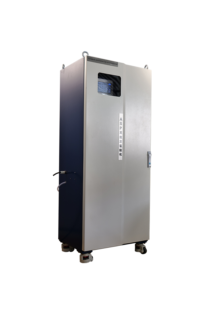 采用智能化生产技术,制备、生产、输送或灌装、分装一体化全集成,设备状态、生产过程、产品参数、实时工况等全面掌控,操作使用可靠便捷。从原料到产品的完全在线监测和质量控制。可自主设定并稳定生产从700mg/L-1200mg/L的多种浓度范围的微酸性次氯酸杀菌消毒液,精度误差5%以内。一体化次氯酸生成器的研发成功,彻底解决了次氯酸生产过程中的活化、pH值、次氯酸浓度、计量、控制等关键工艺节点质量问题,在稳定性、效果、安全方面远超国内同类产品杀菌消毒液,可高效杀灭手部、皮肤表面、环境、物体表面、水路管道中的各种细菌繁殖体、细菌、病毒、真菌和芽孢等,杀菌率99.99%以上,没有二次污染,可直接作用于皮肤表面。次氯酸钠的pH>10,易腐蚀接触物,人体皮肤是禁止直接接触次氯酸钠的。同时由于次氯酸液体的有效次氯酸是次氯酸钠的50-70倍,次氯酸的电性为中性,与细菌和微生物不排斥,充分融合杀灭细菌和微生物。而次氯酸根(次氯酸钠中主要含次氯酸根)的电性为负,与细菌和微生物的电性相同产生排斥,导致杀菌效率下降。所以无论是安全环保属性还是杀菌效率,次氯酸都远远高于次氯酸钠杀菌剂数十倍。